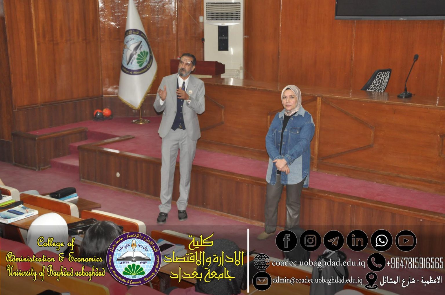 The College of Administration and Economics / University of Baghdad provides a range of services that aim to support students and develop their skills. These services include scientific laboratories, a stadium and sports halls, a college studio, in addition to a theater, discussion halls, a prayer room, a college library, green spaces, and other services.